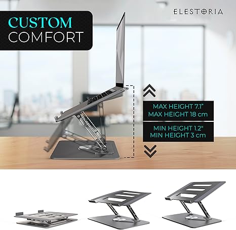 Foldable Laptop Riser with 360 Rotating Base, Laptop Stands with Heat Vent, Laptop Holder Compatible with MacBook Air Pro All Laptops