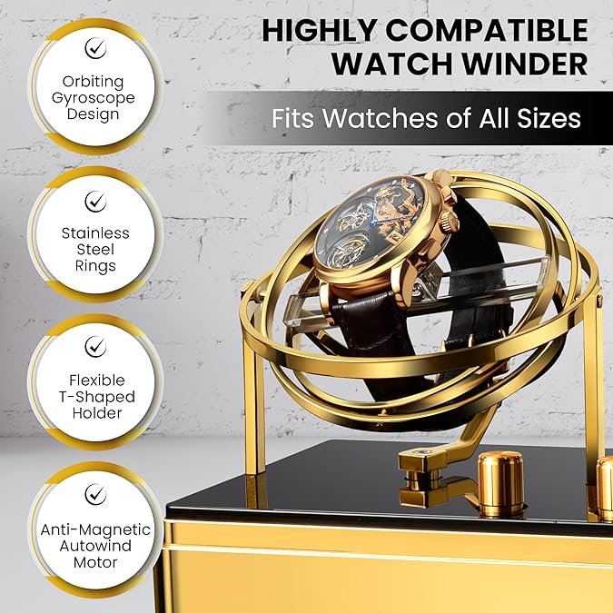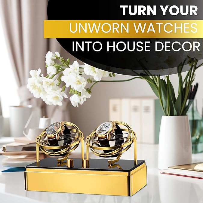 Double Watch Winders for Automatic Watches and Mechanical Watch Winder for Rolex Watch Winder Box Gyro Gyroscope Clear Transparent